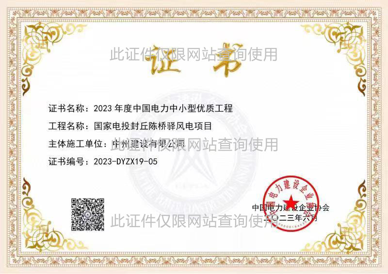 國優(yōu)證書:國家電投封丘陳橋驛風(fēng)電項目