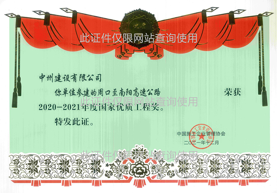 2020-2021年度國家優(yōu)質(zhì)工程獎