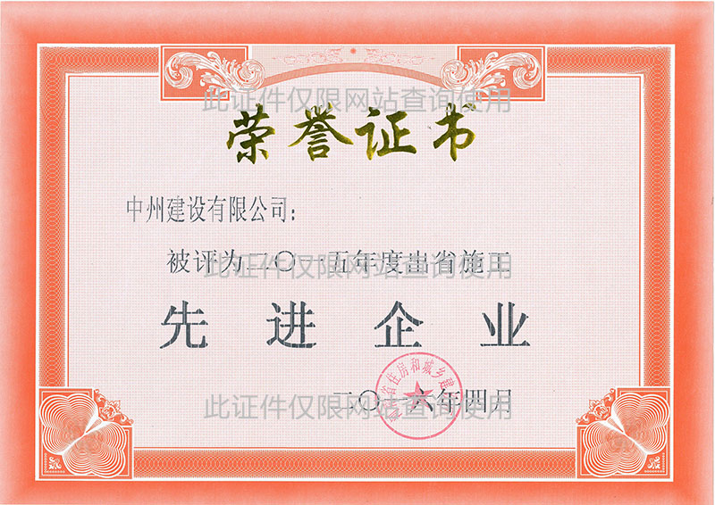 2015年度出省施工先進(jìn)企業(yè)